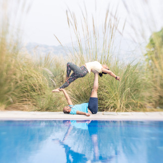 Soon that evening, we attended the Acro Yoga session held by Samsaryoga and we burned all the calories. After the warm-up and acro exercises, we were all set for this photoshoot by the pool side.